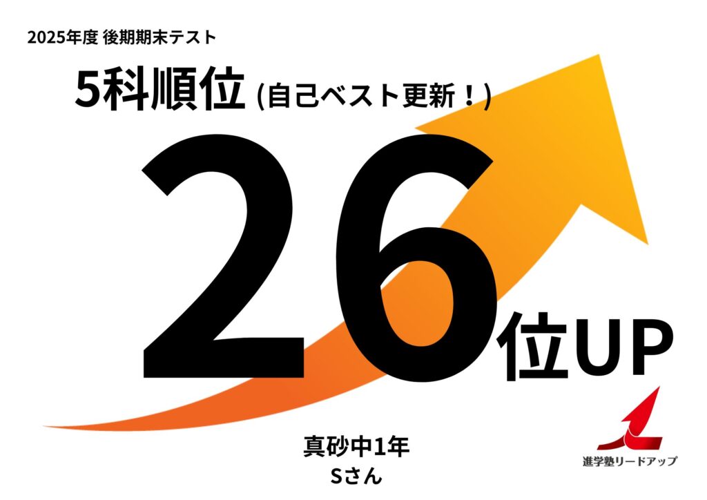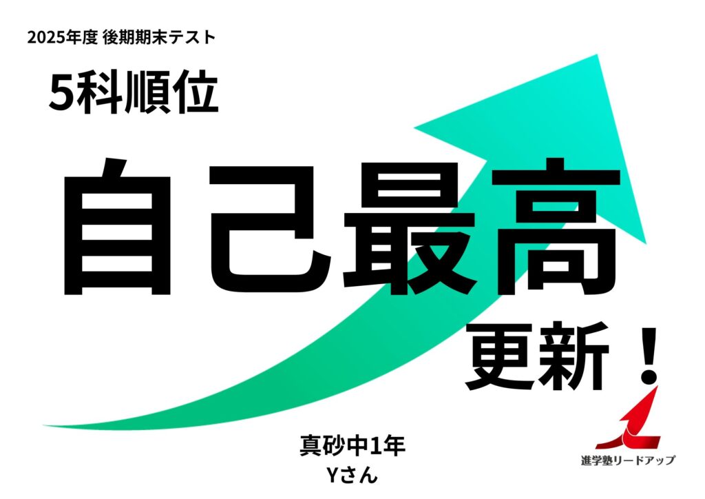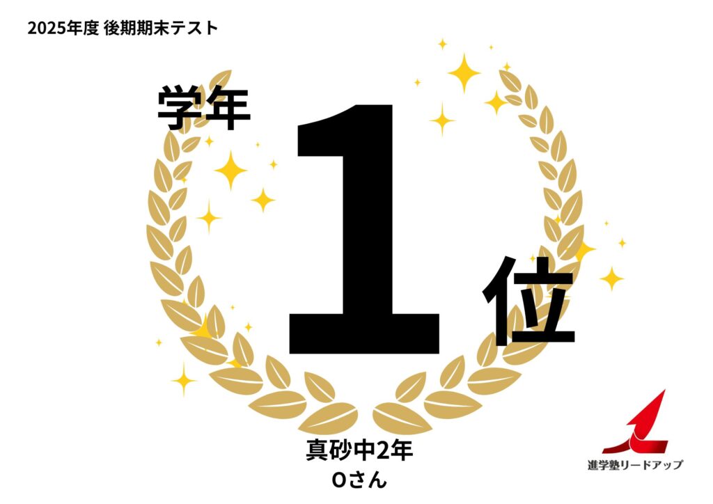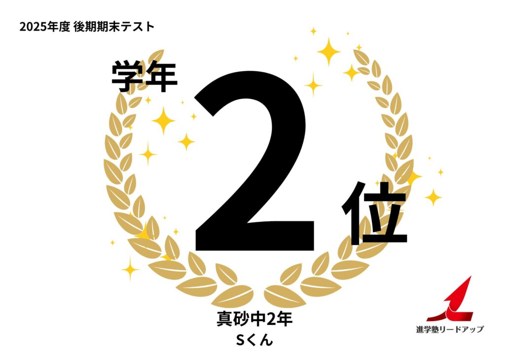 「真砂中の2年生で学年1位2位を取ることができました!同じ学校学年の1,2フィニッシュはリードアップ初の快挙でした!