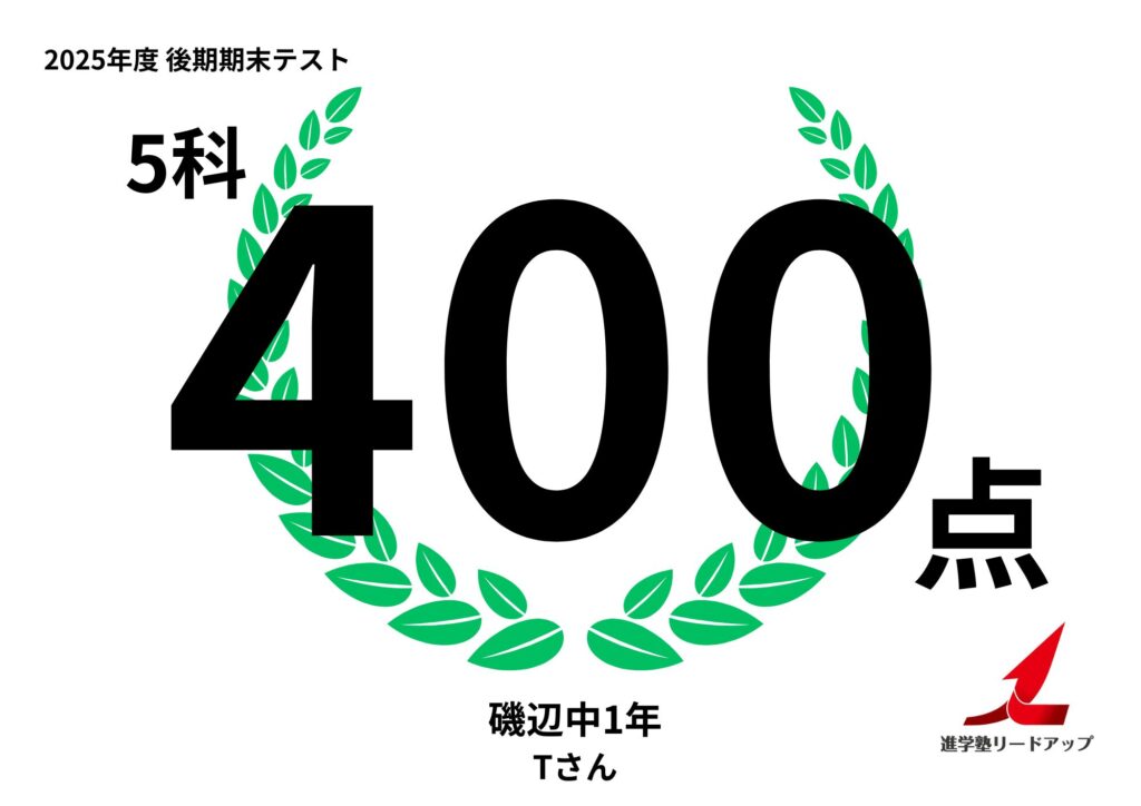 • 5教科400点以上を取って、偏差値も2ランクアップ(7以上アップ)して、最終的に“行きたい高校を選べる”ようになりたい!