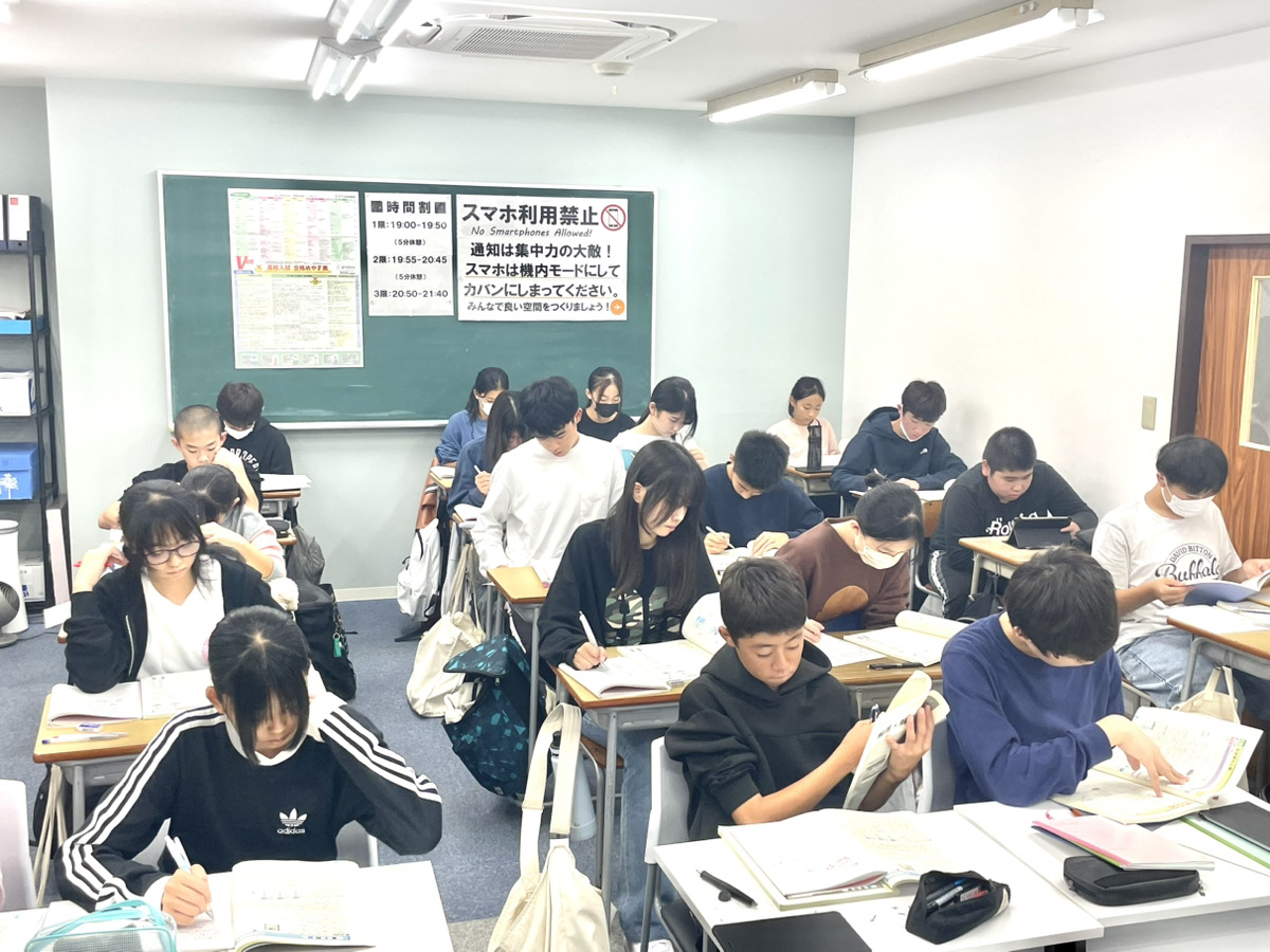 中1,2生はともに11月に行われる後期中間テストに向けて、各学校のテスト範囲に特化したテスト対策の授業を行っています。