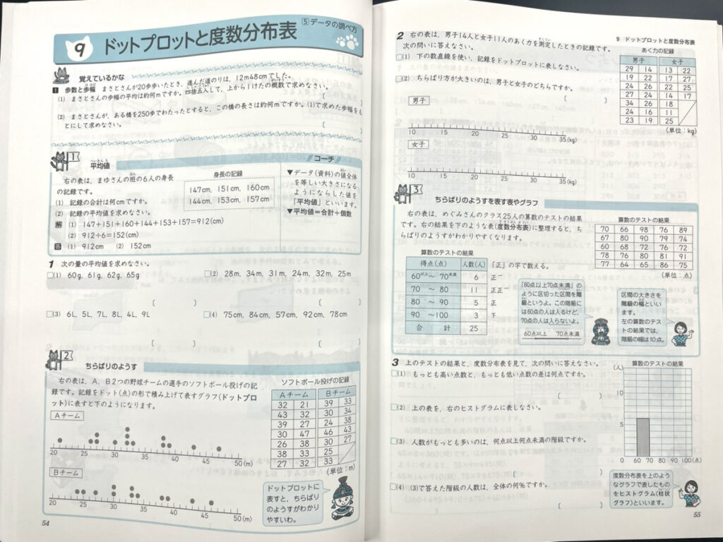 6年生は「ドットプロットと度数分布表・代表値」を中心に学校で習った単元の復習演習を中心に行いました!
