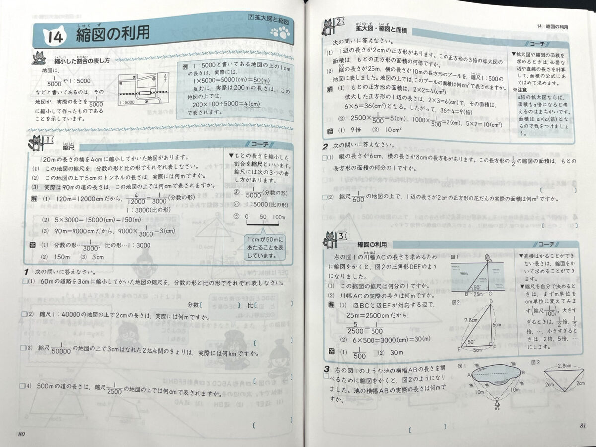 特に縮尺の問題では、「拡大図・縮図と面積」の問題で苦戦している生徒が多かったです。