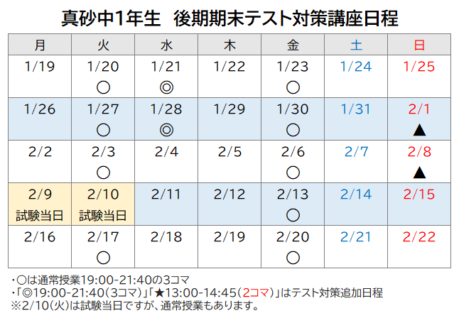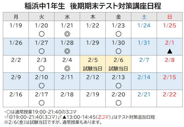 テスト対策講座の日程